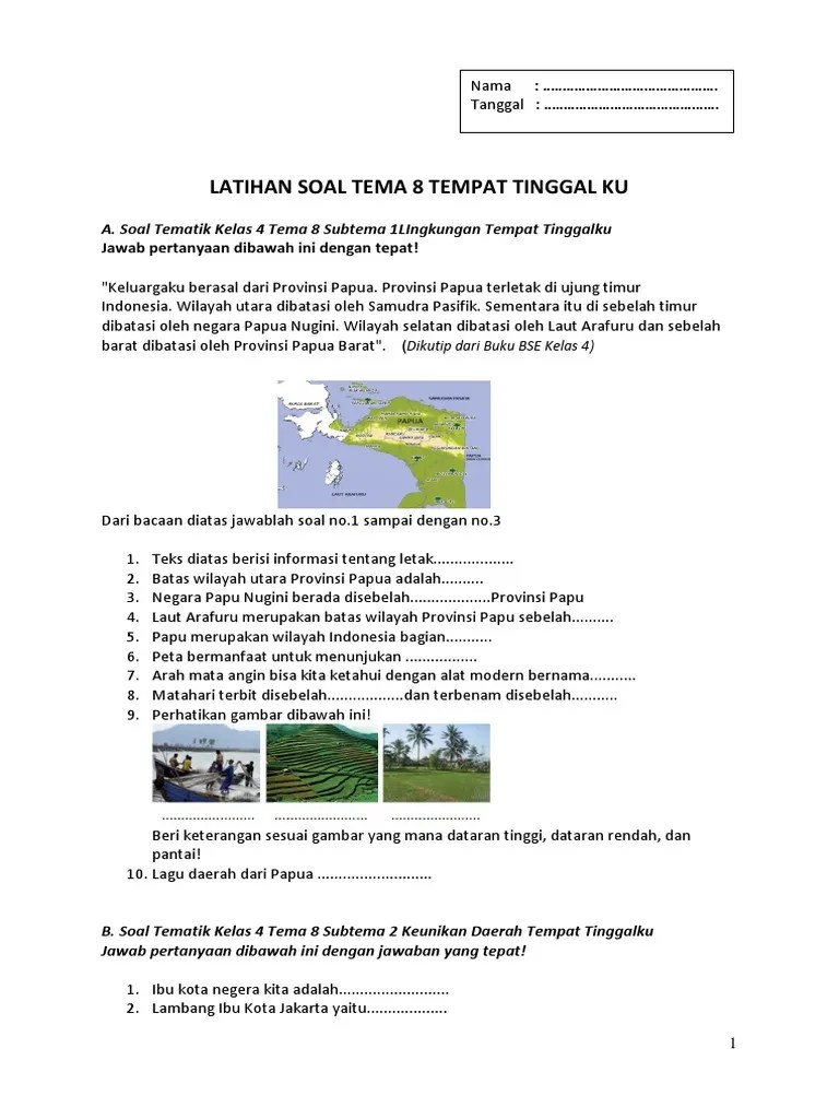 Soal ulangan harian kelas 4 tema 8 subtema 1 lingkungan tempat tinggalku terdiri dari soal pilihan ganda, soal jawaban singkat dan soal . Bagaimanakah cara mengubah pecahan biasa ke bentuk desimal? Setiap bagian soal terdapat 30 soal pilihan ganda, 10 soal essay dan 5 soal uraian yang sudah lengkap dengan kunci jawaban. Segera cek kumpulan soal ukk / pat tema 8 kelas 1 sd untuk semester genap. Soal uas/pas kelas 4 tema 8 daerah tempat tinggalku 2018/2019 semester 2 dengan mengacu kepada.